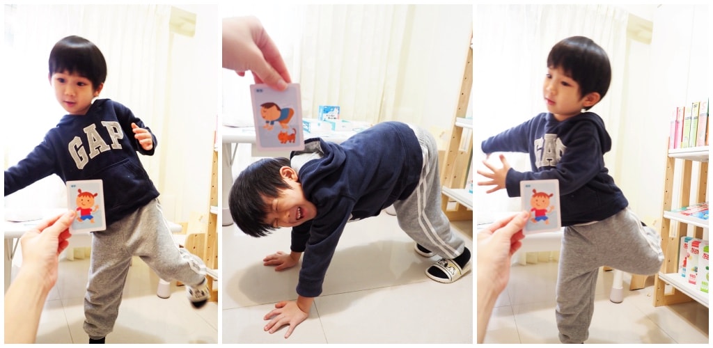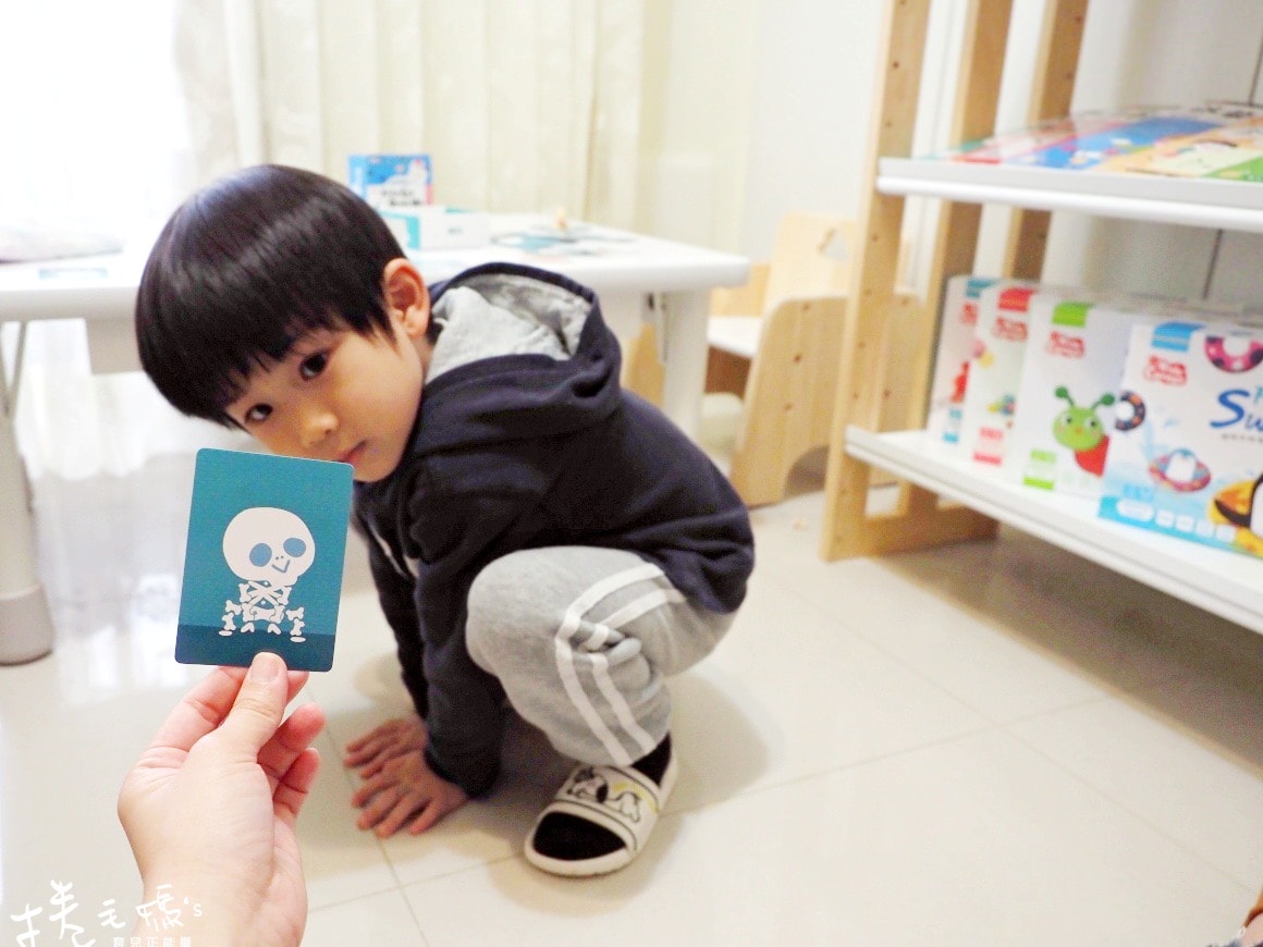 玩法也是簡單,卡牌一面是骨頭人,一面是小朋友。看著骨頭人猜猜看小朋友做的是甚麼動作。