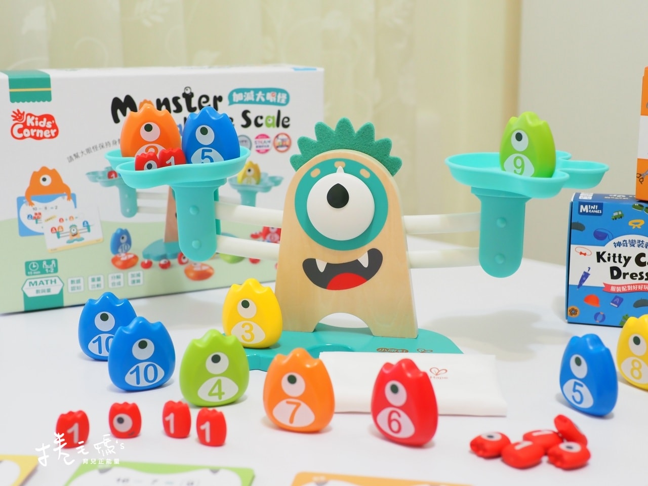 結合了數字概念、大小、重量、比較、顏色,把爸媽覺得很難解釋、難教的抽象的概念『遊戲化、量化、活用化』。