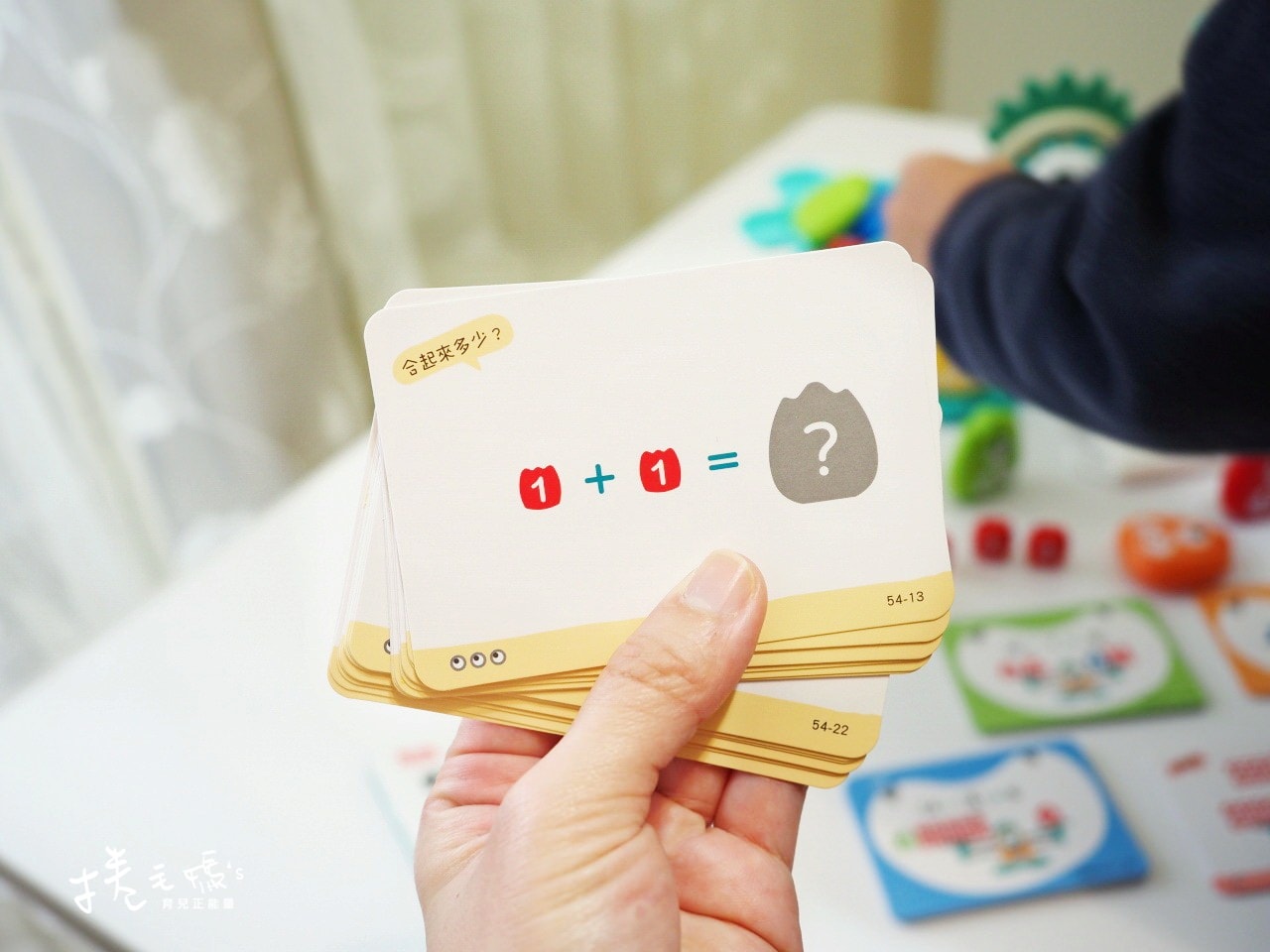 4種卡牌分別有不同難度的關卡,聽到的步驟也寫得很詳細,搭配實體的彩色木片以及情境遊戲,增加他們對於數學的認知。搭配圖卡拼出相同的組合,帶孩子認識數字、加減、排列組合和運算,玩法很像在拼積木,是需要拆解再組合的過程。加上圖案可愛、顏色繽紛、遊戲有規律性,小孩很快就能夠上手哦!