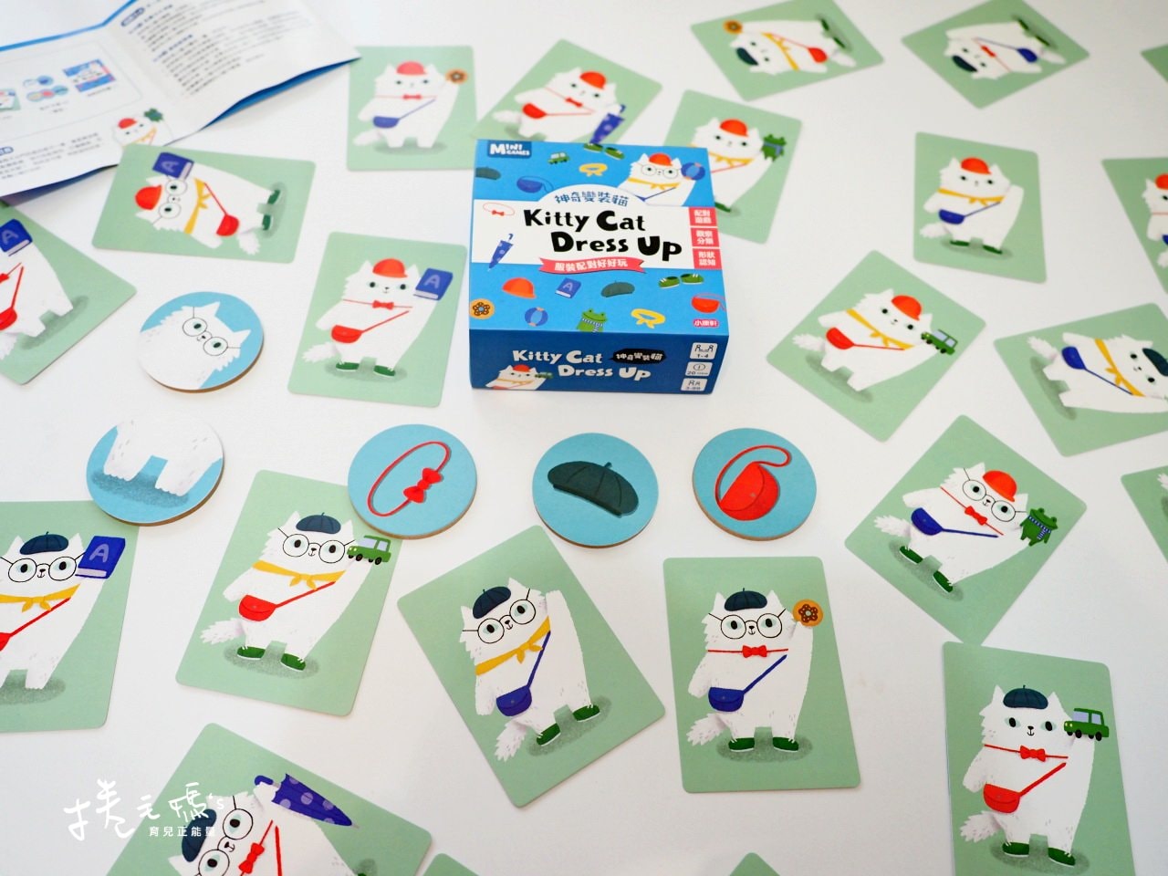 隨機轉動配件,看誰先在32張卡牌裡面找出全部有一樣配件的小貓就獲勝。不過這款我覺得跟職業調查局稍微有一些類似,可以二選一