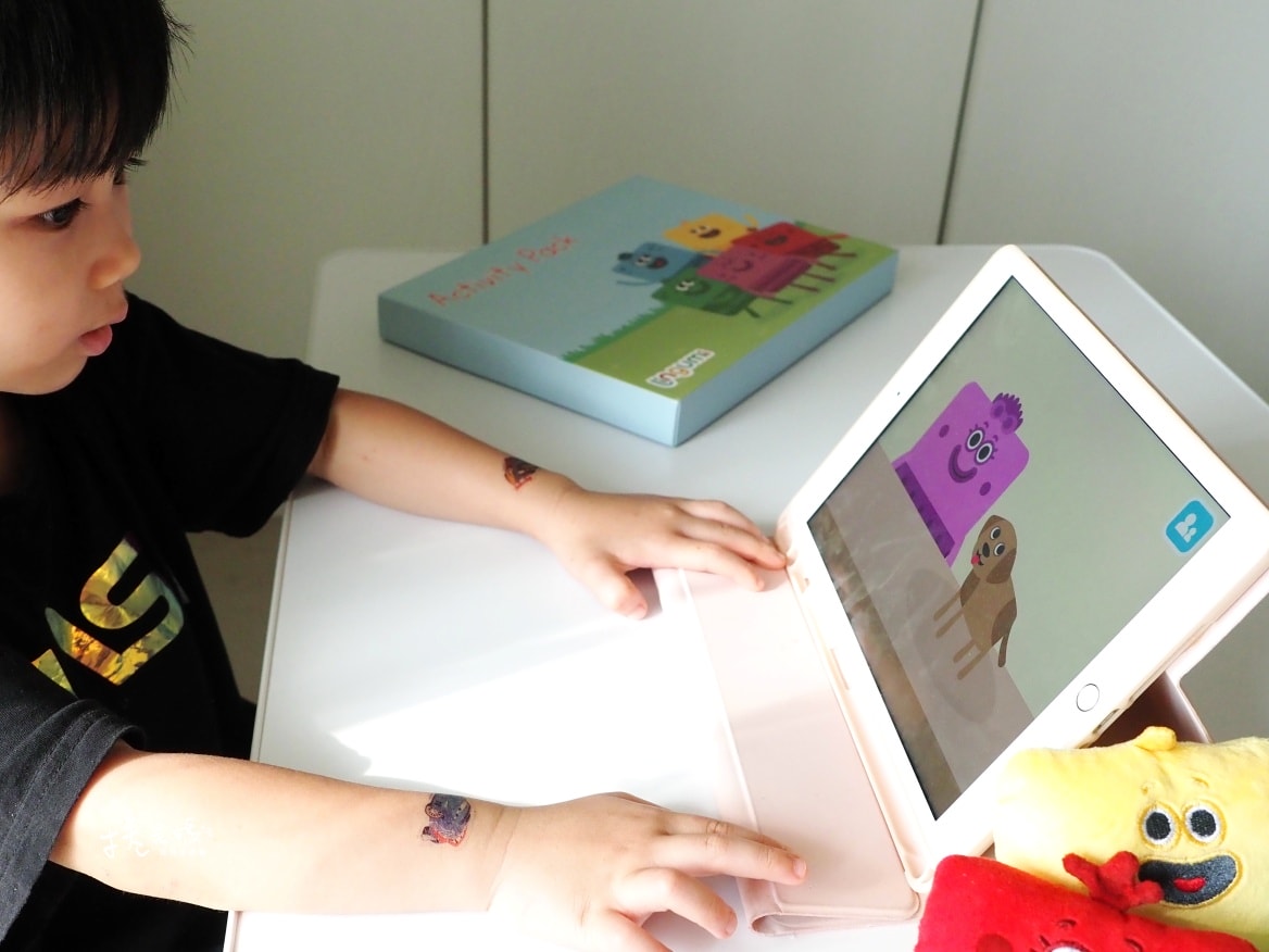 在Toby的課堂裡,課程編排相當簡潔明瞭。由Toby和Lingumi的四個虛擬角色:Bob、Yum、Peek、Hush陪小孩一起學習英文。
