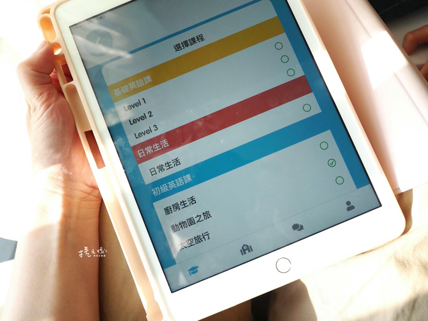 大改版的首頁介面視覺簡潔了很多,點進來就可以很直覺操作開始上每日的基礎英文課程,真的很直覺,其他功能都需要透過家長區解鎖進入,不用擔心小孩亂按到有的沒的(付錢之類的…)